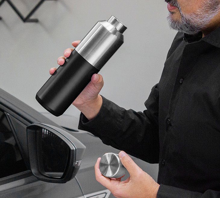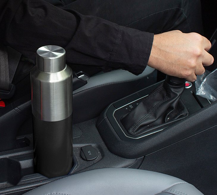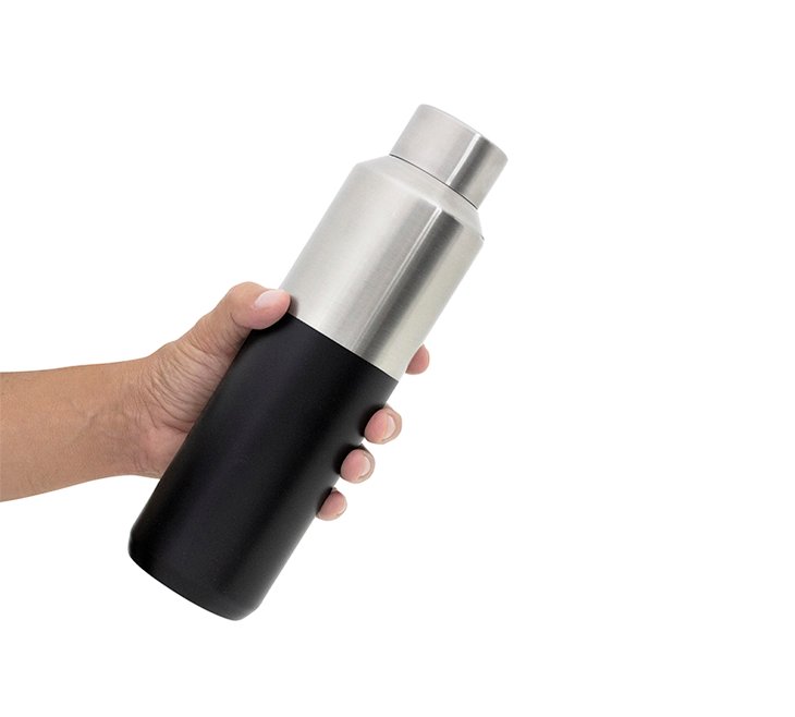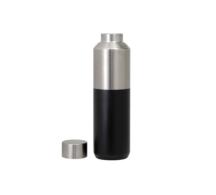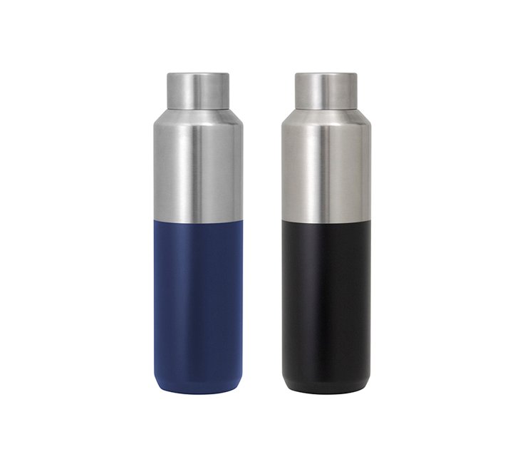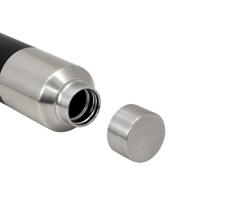 Botella doble pared, sellada al vacío. Interior de acero 304 y exterior de acero 201. Tapa a rosca de acero 201 con anillo de silicona. Pintura acabado mate en parte inferior. Mantiene por más de 12 hs la temperatura de las bebidas calientes y 24 hs de las bebidas frías.