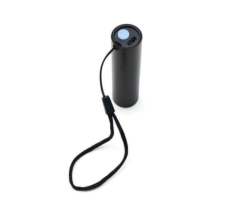Linterna con batería recargable y banda de agarre. Fabricada a base de aluminio, dándole un peso liviano y duradero. Ideal para tener a mano. No lleva pilas. Altura:8 cm. Ancho:2 cm. Profundidad:2 cm. Empaque individual: Caja.