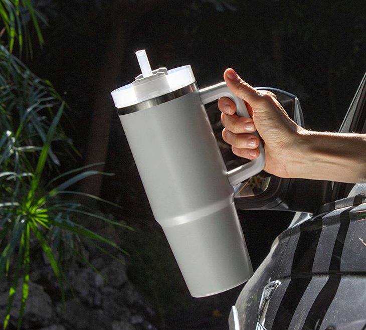 Mug doble pared, sellado al vacío con sorbete. Tecnología Vacuum. Interior en acero 304 y exterior en acero 201. Tapa plástica transparente a rosca con anillo de silicona. Cierre giratorio porta sorbete. Sorbete plástico translucido. Pintura exterior con acabado mate. Mantiene hasta 12 hs la temperatura de las bebidas calientes y 24 hs de las bebidas frías.