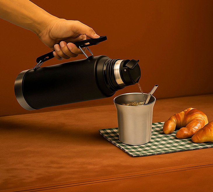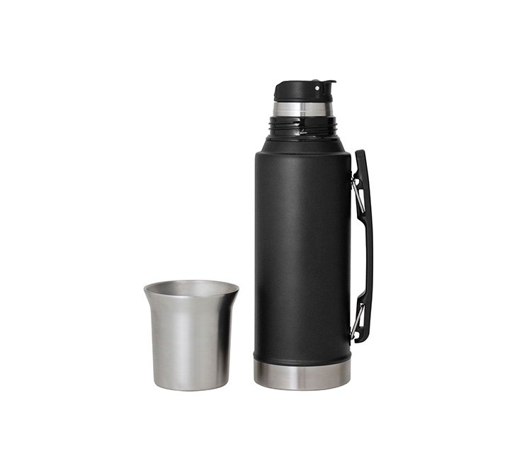 Termo doble pared, sellado al vacío. Interior de acero 304 y exterior de acero 201. Tapón cebador de precisión a rosca con cierre hermético de PP con anillo de silicona. Pintura powder coat (pintura más duradera y resistente a la corrosión y el paso del tiempo), acabado mate. Tapa a rosca doble pared, interior de acero 304 y exterior de acero 201, puede utilizarse como mate o taza. Incluye manija para su mejor traslado. Mantiene por más de 12 hs la temperatura de las bebidas calientes y 24 hs de las bebidas frías.